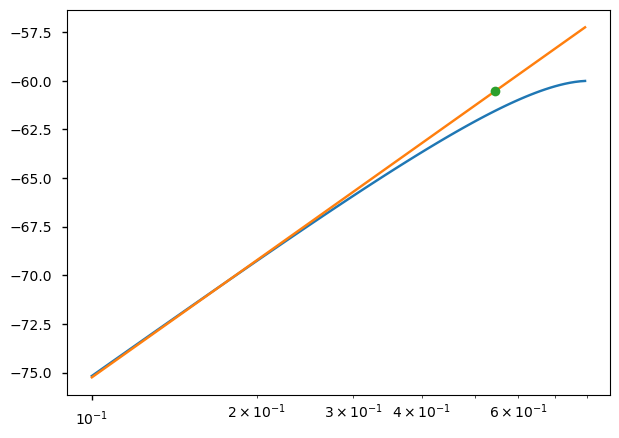 ax.semilogx(vd_val[ix], y_linear_dB[ix], 'o', label = '1dB')